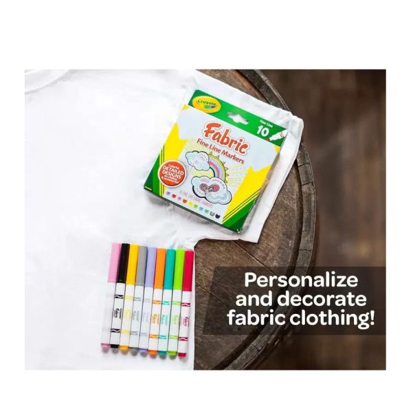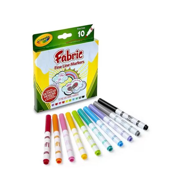 The Crayola Fine Line Fabric Markers Set of 10 (588626) is perfect for adding detailed, colorful designs to clothing and fabric projects. The Crayola Fine Line Fabric Markers Set of 10 features fine tips that allow precise lines, patterns, and lettering with ease.