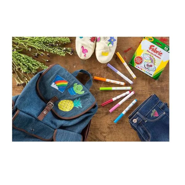 These fabric markers deliver rich, permanent color that stays bright after drying, making them ideal for DIY fashion, school crafts, and creative artwork. Designed for use on most fabrics, the Crayola Fine Line Fabric Markers Set of 10 offers smooth ink flow and easy control for kids and adults alike.
