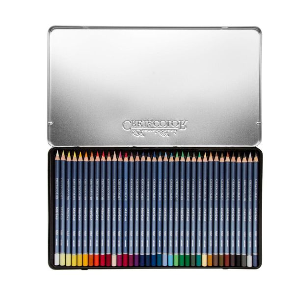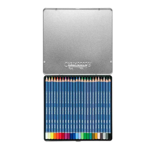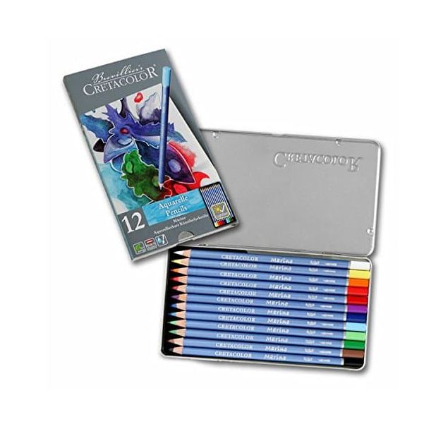 Delve into the watercolor realm with Cretacolor Marino Aquarelle Color Pencils Set, a perfect solution to provide both innovative ideas and accurate work. With this set of water-soluble colored pencils, you have a wide range of bright faced pencils that are easy to apply and smooth out. Whatever the case is, blending each pencil with water gives you the maximum intensity and the colors completely mix. This a product for artists who want to retain full command over their work yet still desire the brilliant watercolor effect and it comes with a tin box that can be easily carried or kept aside.