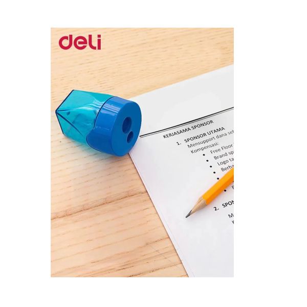 The Deli Two holes Cup Pencil Sharpener 0551 1Pc for standard pencils measuring 8 mm and another for jumbo-sized pencils measuring 12 mm. Each set comes in a vibrant kiwi green color, with a quantity of 3 sharpeners per pack. These sharpeners are versatile and can accommodate different pencil sizes, making them suitable for various needs. The kiwi green color adds a fun and colorful touch to your stationery collection. Get this practical and stylish set for precise sharpening every time.