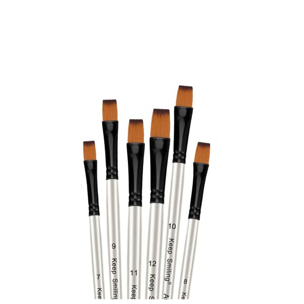 The Keep Smiling Flat Tip Paint Brush Set of 6 has an outstanding quality scratch trim brush set that is great for artists looking for a versatile and dependable paint brush. Each brush has been designed for the utmost accuracy and care using a premium-quality nylon bristle material; thus providing users with long-lasting paint brushes and the best opportunity to produce incredible works of art. The innovative shape of these brushes allows for many different strokes while still providing users with a very smooth line allowing for amazing curves and special effects on canvas.