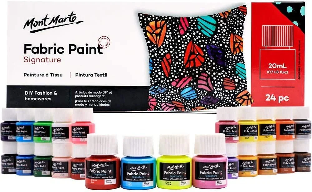 Transform your textiles with Mont Marte Fabric Paint Signature 20ml. This high-quality fabric paint offers vibrant, long-lasting colors that adhere beautifully to natural and synthetic fabrics. The 20ml tube provides precise control, allowing for detailed designs and bold patterns. Ideal for customizing clothing, accessories, and home decor, this fabric paint is easy to use and suitable for artists of all levels. Once dry, the paint becomes permanent and machine washable, ensuring your creations remain vivid and intact through numerous washes. Unleash your creativity and personalize your fabrics with Mont Marte Fabric Paint.