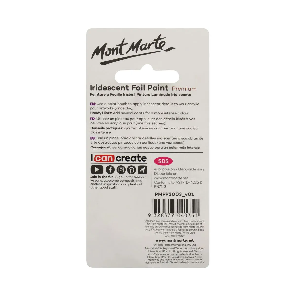 Mont Marte Premium Iridescent Foil Paint 20ml