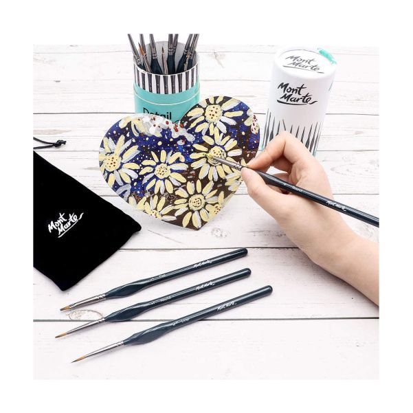 With the Mont Marte Signature Detail Brush Set, you can achieve more detail in your work. The Mont Marte Signature Detail Brush Set has fifteen detail brushes created especially for painters seeking great accuracy and detail. With very little effort, the ultra-fine tips of the Mont Marte Signature Detail Brush Set make it simple for a painter to swiftly complete elaborate painting techniques.