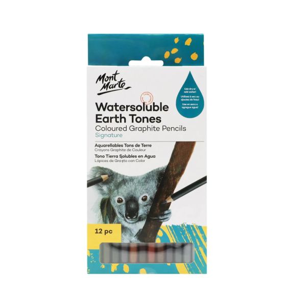 Mont Marte Watersoluble Earth Tones Coloured Graphite Pencils Signature 12pc
