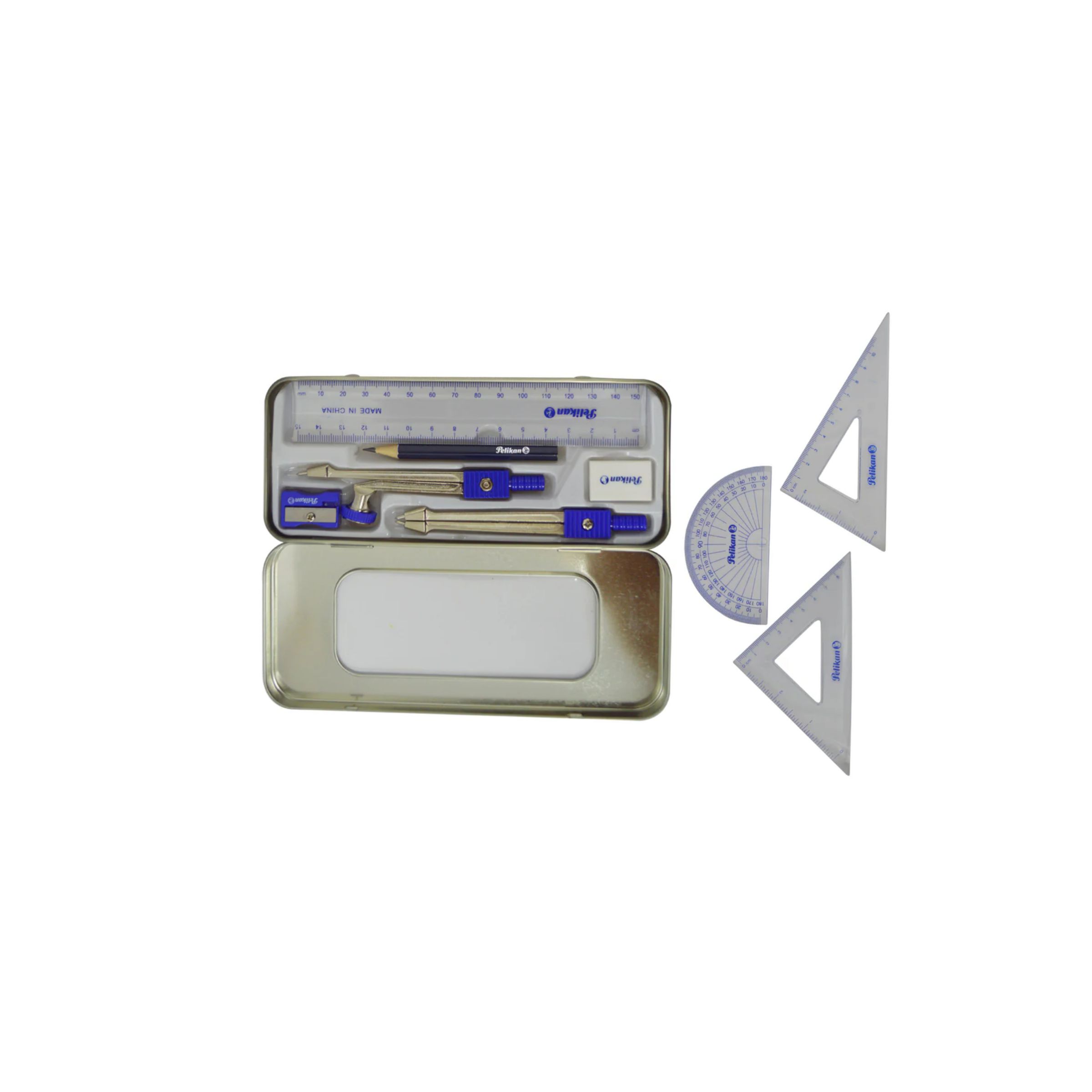 The Pelikan Geometry Box Set No-403346 is a comprehensive set of geometry tools ideal for students, engineers, architects, and anyone needing precision in geometric drawing and measurement. This set typically includes a range of essential instruments such as compasses, rulers, protractors, set squares, and other drafting tools.