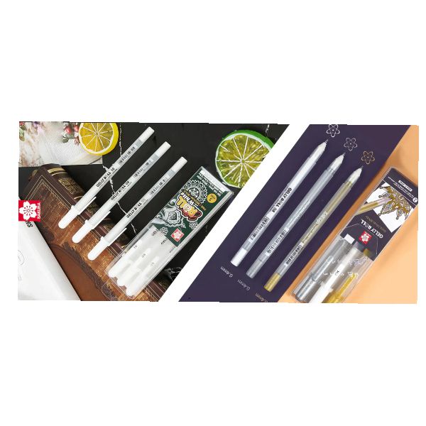 Sakura Gelly Roll Metallic Pen Pack of 3. These pens deliver smooth, metallic ink that glides effortlessly across paper, creating stunning effects on dark or light surfaces.
