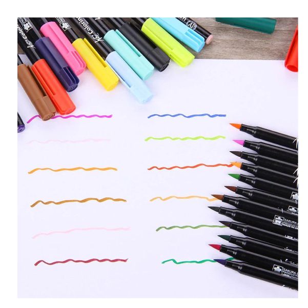 The Sakura Koi Coloring Brush Pen Marker Set. This multi-use pen is a marker and a brush all in one – it enables you to easily make both fine lines and thick strokes. With a variety of bright colors and a supple nylon brush tip, these pens are great for drawing, hand lettering and coloring. The water-based ink flows well and is smell-free on the contrary it is ideal for for beginners and it will allow experienced artists to add more depth and dimension with this medium to their art work.