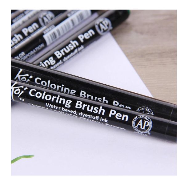 With flexibility in a brush and accuracy in a marker, the Sakura Koi Coloring Brush Pen Set produces delicate lines and powerful strokes effortlessly. This set provides a full range of vivid colors, adjustable nylon brush tips ideal for coloring, lettering, and illustrating. Perfect for beginning and expert artists seeking depth and dimension in their work, water-based ink flows freely and has no scent.